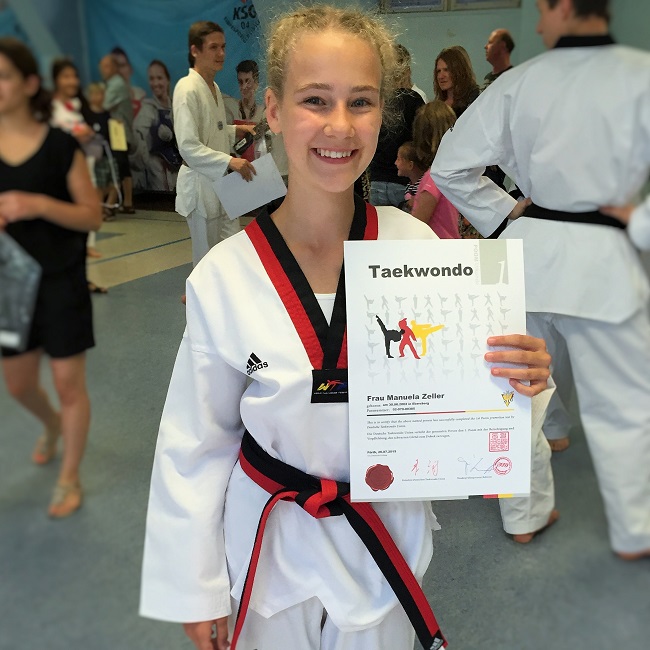 Eine große Truppe unserer Sportler fuhr am 26. Juli mit Manuela Zeller nach Fürth, um sie auf ihrer Dan-Prüfung zu unterstützen. Sie zeigte ein perfektes Prüfungprogramm und wurde knapp Prüfungszweitbeste.